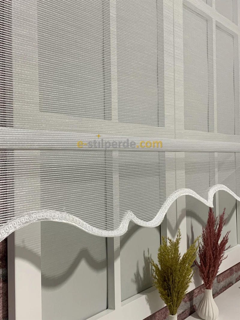 Çiftli Stor - Beyaz Çizgili Tül Stor Beyaz Mat Lüks Stor Perde
