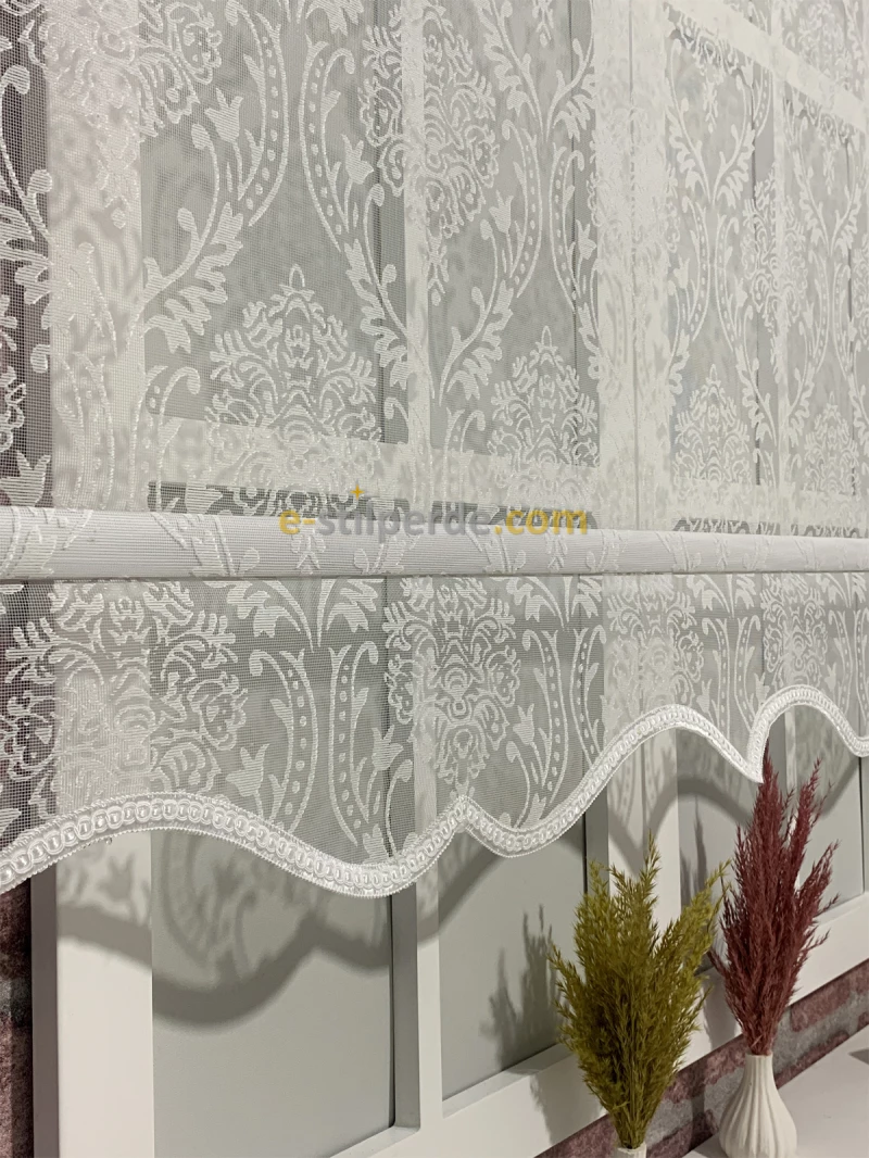 Tek Tül - Beyaz Baskılı Damaks Tül Stor