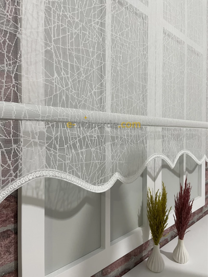 Çiftli Stor - Beyaz Cam Kırığı Tül Stor Beyaz Mat Lüks Stor