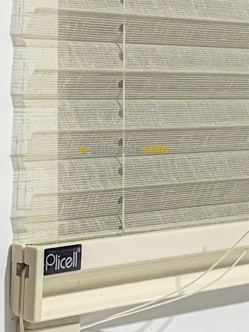 ''PLİCELL''  Çiftli Açık Kahve-Krem Tül Pilise Perde