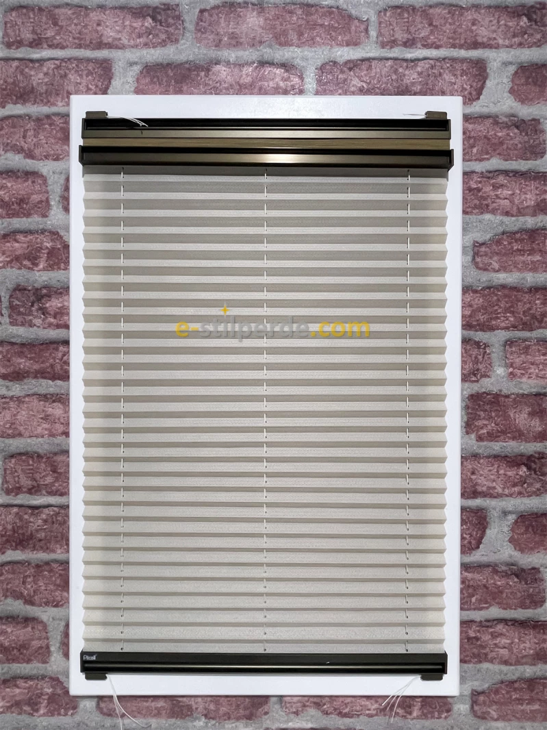 ''PLİCELL'' Çiftli Bej-Açık Kahve Şaltuk Tül Pilise Perde