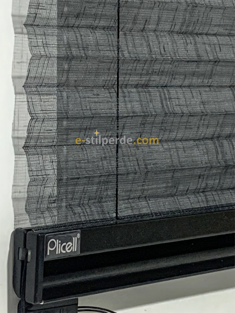 ''PLİCELL'' Çiftli Siyah-Siyah Tül Pilise Perde (Parrot-15 - Lattice-05)