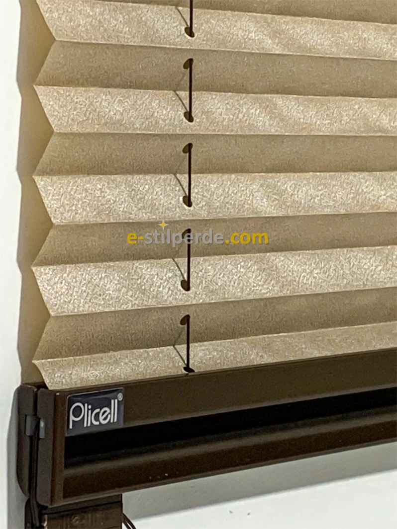 ''PLİCELL'' Simli-Açık Kahve Pilise Perde (Moon-03)
