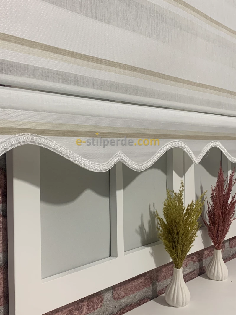 Beyaz-Açık Kahve Çizgili Zebra Perde