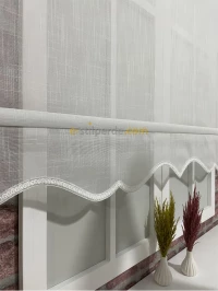 Çiftli Stor - Beyaz Keten Tül Stor Mavi Mat Lüks Stor